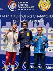 Euroopan mestaruus meni lopulta Anton Aristarkhoville (AIN), joka oli finaalissa Saksan Robin Walteria parempi pistein 242,2–241,4. Mestaruus ratkesi vasta viimeisellä laukauksella. Solari sai pronssia (219,3). Monna oli viides.